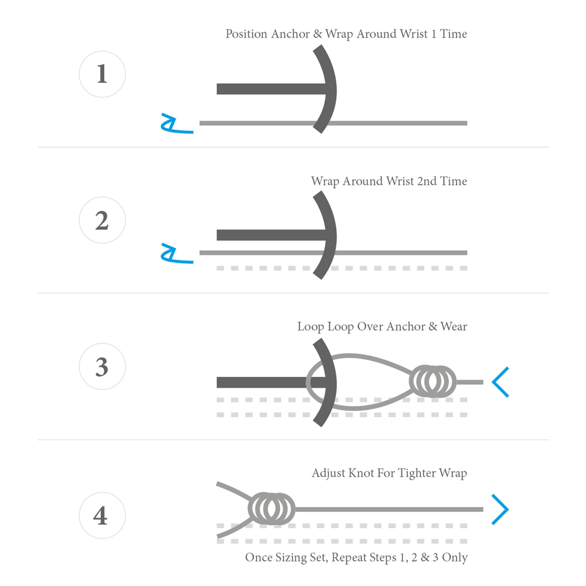 Size: This bracelet is one size fits all, with the leather able to extend or tighten to suit your wrist size. To take the bracelet on or off your wrist, simply slide the one adjustable knot around the leather to make the loop size smaller or larger, and once set, keep the loop size consistent and continue wearing by easily unhooking the clasp from the loop.